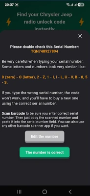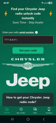 Dapatkan kod radio Chrysler Jeep anda dengan pantas menggunakan aplikasi ini. Masukkan nombor siri radio anda untuk kod serta-merta selepas pembayaran. Jaminan wang dikembalikan 100% jika kod tidak berfungsi. Sokongan 24/7 tersedia.