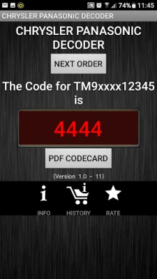 Sila maklum bahawa untuk setiap permintaan kod radio yang berjaya dijana, caj perkhidmatan akan dikenakan. Struktur bayaran ini membolehkan kami mengekalkan ketepatan dan ketersediaan perkhidmatan berharga ini. Penting untuk ditegaskan bahawa aplikasi ini adalah perkhidmatan penyahkodan bebas dan *bukan* merupakan produk rasmi daripada Chrysler atau Panasonic. Semua tanda dagangan yang disebut adalah hak milik eksklusif pemilik masing-masing. Kami komited untuk menyediakan penyelesaian yang berkesan sambil mematuhi semua hak cipta dan hak tanda dagangan.