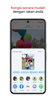 Hidupkan semula detik-detik kegemaran anda secara langsung dalam Google Photos, atau kongsikan dengan sesiapa sahaja dalam senarai kenalan anda, tidak kira sama ada mereka menggunakan aplikasi ini atau tidak. Dengan infrastruktur keselamatan canggih Google, semua foto dan video anda terjamin selamat, sama ada dalam simpanan atau semasa dikongsi. Bimbang ruang telefon penuh? Dengan sandaran diaktifkan, anda boleh mengosongkan storan peranti anda dengan mudah tanpa kehilangan sebarang foto yang telah disandarkan. Selain itu, gunakan Google Lens untuk mengenal pasti objek dalam foto anda, atau ubah kenangan digital anda menjadi cetakan fizikal seperti buku foto dan seni dinding, terus dari aplikasi Google Photos.