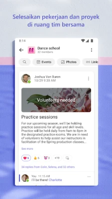 Selesaikan projek dan capai matlamat bersama dengan Microsoft Teams yang direka untuk kolaborasi. Kongsi detik penting melalui foto dan video terus dalam sembang, serta akses dokumen dan fail penting dengan mudah menggunakan storan awan yang terintegrasi, memastikan anda sentiasa bersedia di mana jua. Susun kandungan penting seperti acara, foto, pautan dan fail dalam komuniti anda, menjimatkan masa pencarian yang berharga. Optimumkan sesi mesyuarat anda dengan perkongsian skrin, papan putih interaktif, atau bilik pecahan maya. Kawal selia akses maklumat dengan mudah, memastikan setiap ahli pasukan mempunyai data yang tepat. Manfaatkan senarai tugasan untuk menjejaki kemajuan projek, menetapkan tarikh akhir, dan menamatkan tugas bersama-sama, memastikan semua orang sehaluan.