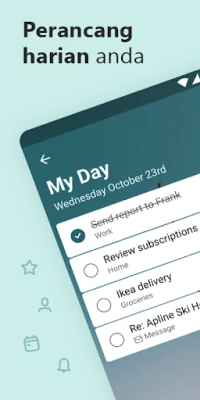 Adakah anda sering merasa terbeban dengan senarai tugasan yang tidak berkesudahan? Microsoft To Do hadir sebagai pembantu peribadi anda untuk memastikan setiap hari berjalan lancar dan teratur. Direka khas untuk membantu anda mencapai tumpuan maksimum, aplikasi ini menyajikan 'Hari Saya', sebuah perancang harian pintar yang mencadangkan tugasan utama, membantu anda mengenal pasti prioriti dan memulakan hari dengan langkah yang betul. Dengan pendekatan yang diperibadikan, anda dapat menyingkirkan kekacauan dan memberi perhatian kepada perkara yang benar-benar penting, sama ada untuk projek kerja yang rumit, tugasan rumah tangga, atau pembelajaran.