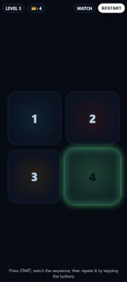 Menggabungkan daya tarikan permainan klasik dengan sentuhan moden, pengalaman ini mudah dikuasai tetapi sukar untuk dicapai kesempurnaan. Anda akan berinteraksi dengan empat pad berwarna-warni, setiap satu menghasilkan bunyi dan animasi unik yang menjadi sebahagian daripada teka-teki. Alami keseronokan apabila anda maju melalui tahap kesukaran progresif, di mana corak menjadi lebih panjang dan lebih mencabar. Jejak markah peribadi tertinggi anda dan cuba pecahkan rekod anda sendiri dengan setiap percubaan. Dengan kawalan sentuhan yang sangat responsif dan bunyi yang memuaskan berinspirasi retro, permainan ini direka untuk interaksi segera dan lancar, pada bila-bila masa dan di mana sahaja—tiada sambungan internet diperlukan.