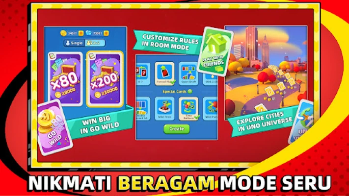 Inginkan sesuatu yang luar biasa? Selami mod "Liar" UNO!™ yang penuh adrenalin, di mana tiada batasan dan setiap perlawanan adalah satu pengembaraan yang tidak dapat diramalkan. Lupakan peraturan biasa—mod ini menampilkan set peraturan rumah yang melampau, permainan dua dek, dan peluang untuk memenangi ganjaran sehingga 600 kali ganda dari pertaruhan anda! Bersedia untuk risiko yang tinggi dan ganjaran yang lumayan, kerana dalam mod liar ini, anda sama ada pulang dengan kemenangan besar atau tangan kosong. Selain itu, jangan lepaskan peluang untuk memutar roda bertuah harian anda untuk pelbagai hadiah percuma dan kejutan yang menyeronokkan. Adakah anda bersedia untuk melepaskan sisi liar anda dalam UNO!™?