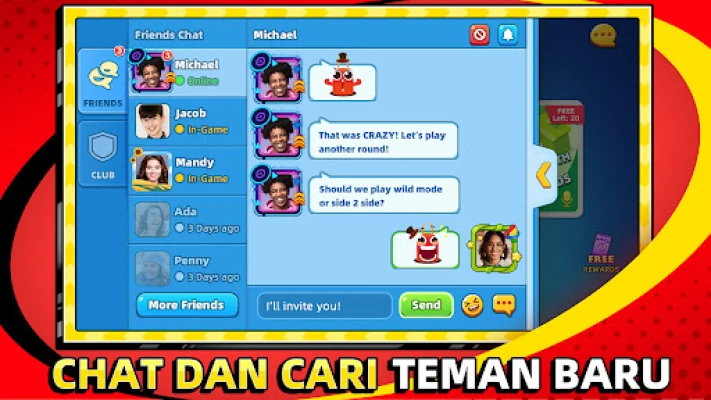 Bagi mereka yang mengidamkan cabaran, arena kompetitif UNO!™ menanti. Uji kemahiran anda dalam kejohanan mingguan dan acara istimewa, bersaing untuk mendominasi papan pendahulu dan merebut ganjaran eksklusif. Atau, tingkatkan dimensi sosial dengan berpasangan bersama seorang rakan atau ahli keluarga dalam mod 2v2 yang strategik. Bekerjasama untuk mengurangkan kad di tangan anda berdua, menyingkirkan lawan dengan taktik yang bijak dan semangat berpasukan. Di UNO!™, anda juga boleh membina komuniti, menghantar hadiah kepada rakan dan berkomunikasi melalui kelab, memastikan tiada siapa yang terlupa untuk melaungkan "UNO!" pada masa yang tepat.