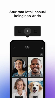 Tingkatkan cara anda berhubung dan berkolaborasi dengan Aplikasi Webex, penyelesaian komunikasi menyeluruh yang direka untuk membawa pasukan anda lebih dekat, tidak kira di mana anda berada. Rasai pengalaman mesyuarat yang luar biasa dengan terjemahan masa nyata untuk lebih daripada 100 bahasa, memastikan setiap suara didengari dan difahami. Sesuaikan susun atur visual agar sesuai dengan gaya interaksi anda dan nikmati perbincangan tanpa gangguan berkat teknologi penyingkiran bunyi latar belakang termaju. Dengan Aplikasi Webex, setiap perjumpaan adalah jelas, inklusif, dan produktif.